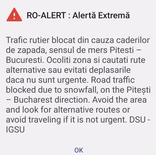 Alertă extremă, miercuri de dimineață! Traficul rutier pe Autostrada A1, pe sensul de mers Pitești – București a fost blocat din cauza căderilor de zăpadă. Șoferii sunt îndemnați să ocolească zona și să caute rute alternative sau să evite deplasările sacă nu sunt urgente.