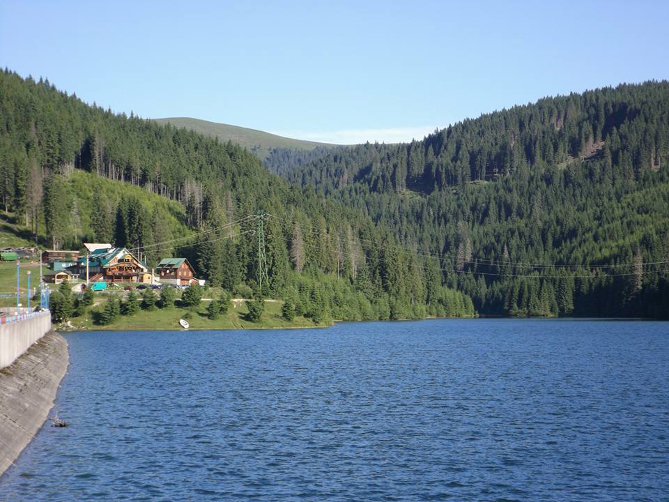 Pe malul lacului se găsește Cabana Bolboci