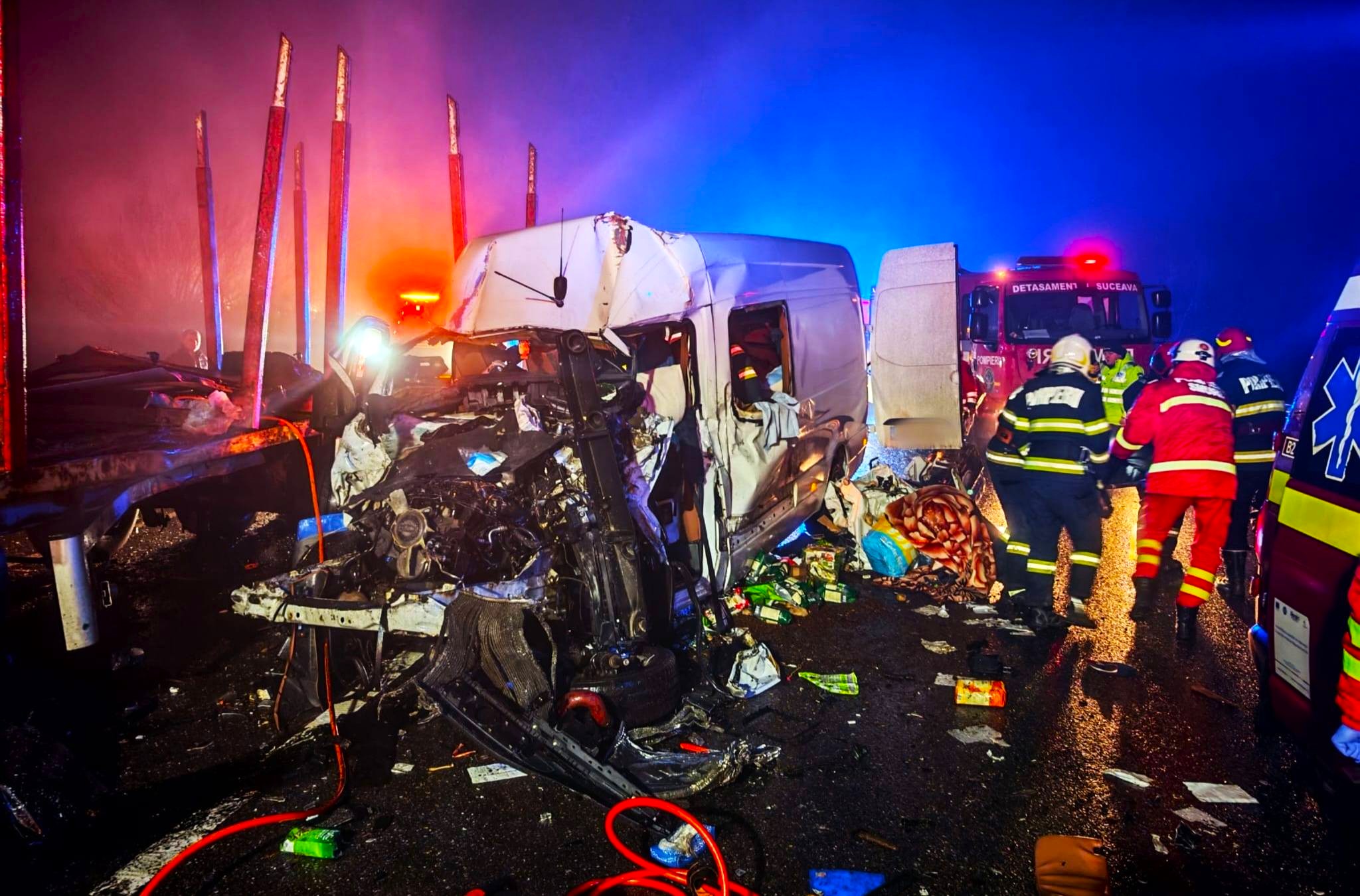 Celelalte trei persoane din microbuz, policontuzionate, au primit îngrijiri medicale la fața locului și au fost transportate la Unitatea de Primiri Urgențe Suceava”, a transmis ISU Suceava.