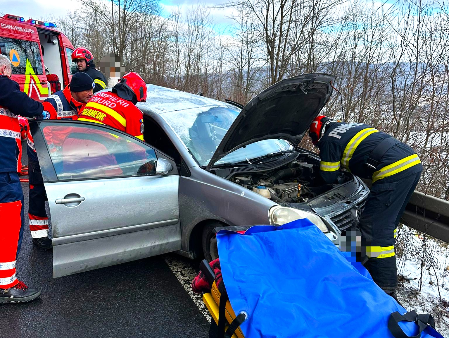 Ambele victime sunt transportate la UPU Târgu Mureș, victima de gen masculin este transportată pe cale aeriana, respectiv victima de gen feminin – cod galben – transportată cu ambulanța SMURD.