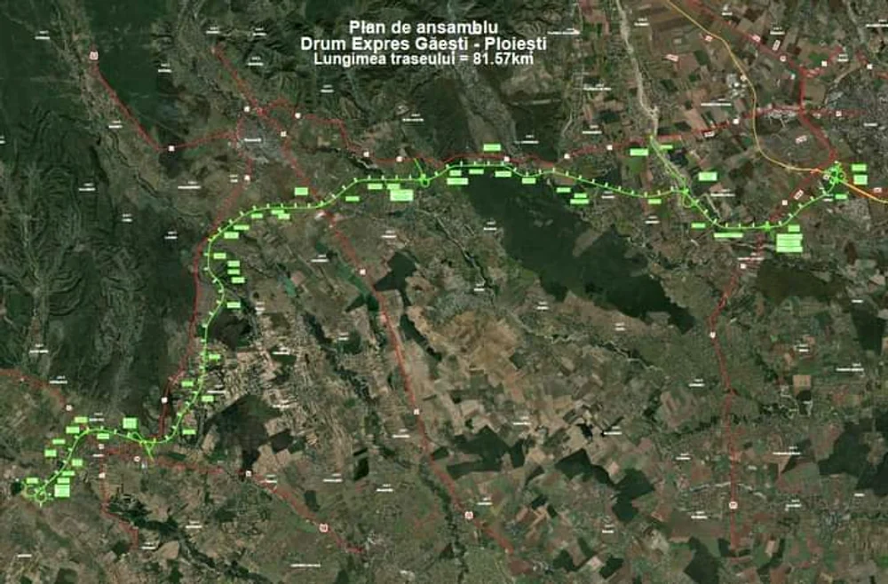 Lungimea Drumului Expres Găeşti-Ploieşti va fi de aproape 82 de kilometri, cu 46 de poduri şi pasaje şi 9 noduri rutiere.
