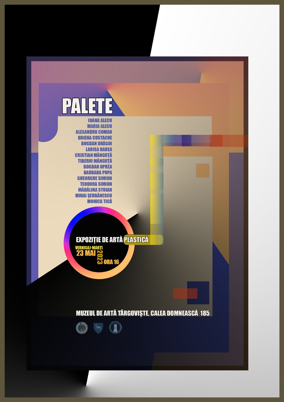 Consiliul Județean Dâmbovița, prin Complexul Național Muzeal „Curtea Domnească” Târgoviște, în colaborare cu Liceul de Arte „Bălașa Doamna” Târgoviște, vă invită la expoziția PALETE a artiștilor dâmbovițeni.