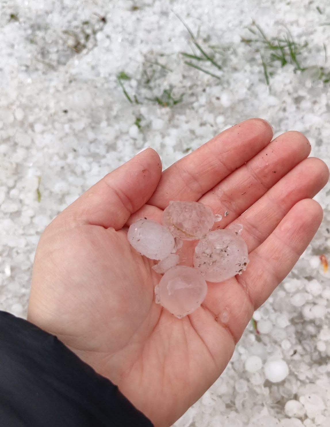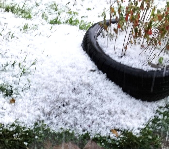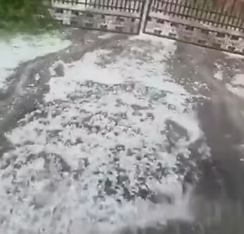 Bucățile de gheață căzute minute bune a acoperit grădinile și șoselele, dar în același timp a distrus culturile oamenilor.