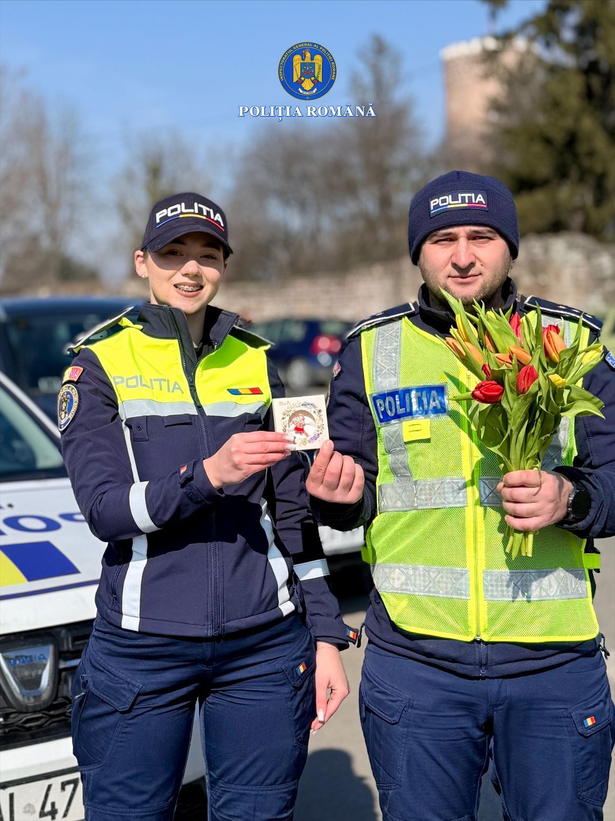 Polițiștii rutieri transmit tuturor doamnelor și domnișoarelor o primăvară frumoasă, cu sănătate, împliniri și drumuri în siguranță!