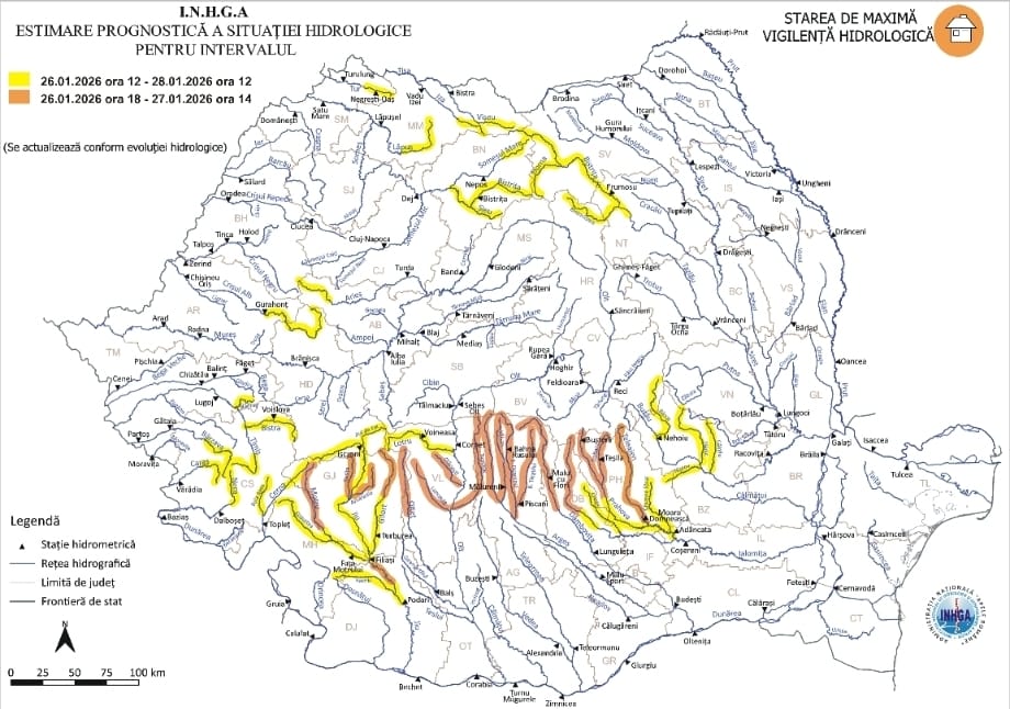 Pericol de inundații în județul Dâmbovița! Hidrologii au emis o avertizare Cod portocaliu pentru județul nostru. Atenționarea va fi valabilă în intervalul luni, 26 ianuarie, ora 18.00 – marți, 27 ianuarie, ora 14.00.