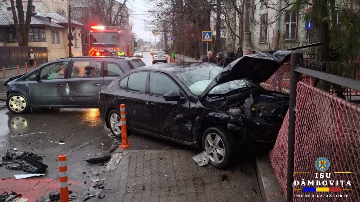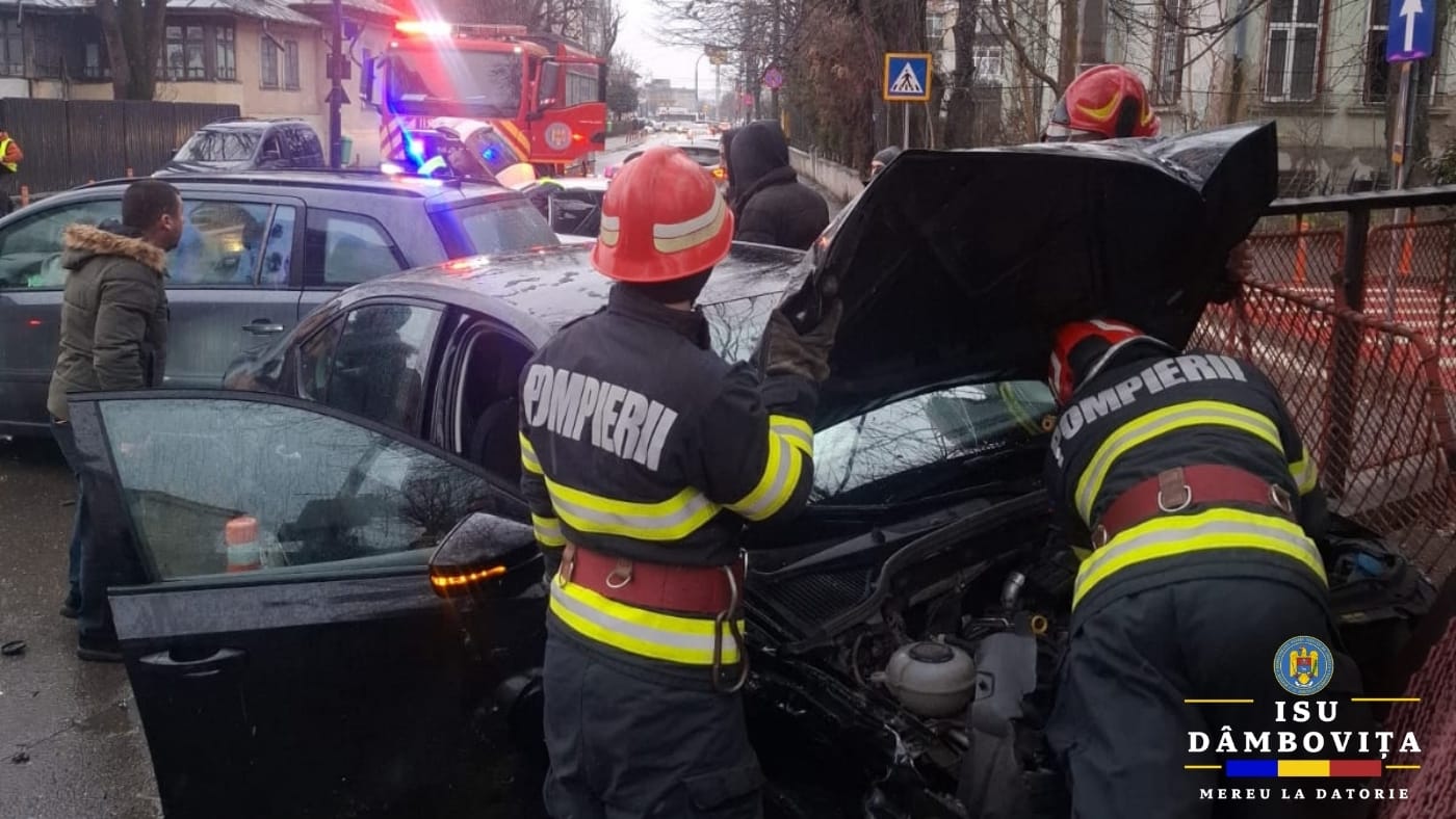 ,,În jurul orei 16:51 am fost solicitați să intervenim în cazul unui eveniment rutier produs pe raza municipiului Târgoviște. La sosirea echipajelor au fost identificate două autoturisme implicate în eveniment și o victimă de sex feminin. Aceasta a fost asistată medical, ulterior fiind transportată la spital pentru îngrijiri suplimentare. Concomitent au fost asigurate măsurile de prevenire și stingere a incendiilor”, a precizat ISU Dâmbovița.