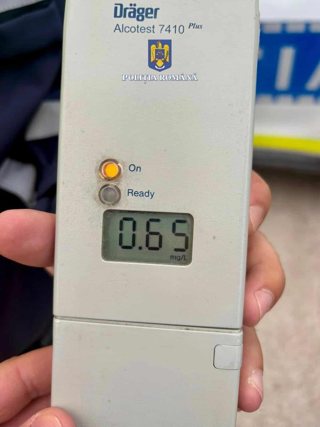 Întrucât emana halenă alcoolică, polițiștii au procedat la testarea acestuia cu aparatul din dotare, rezultatul indicând o valoare de 0,65 mg/l alcool pur în aerul expirat.