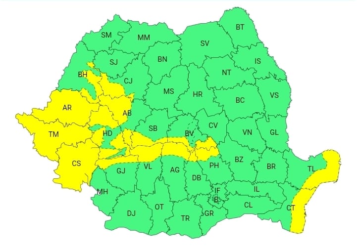 Meteorologii au emis o avertizare Cod galben de intensificări ale vântului, valabilă de marți, 25 noiembrie, ora 03.00, și până miercuri, 26 noiembrie, ora 08.00,în vestul, centrul și sudul țării, precum și pe litoralul Mării Negre.